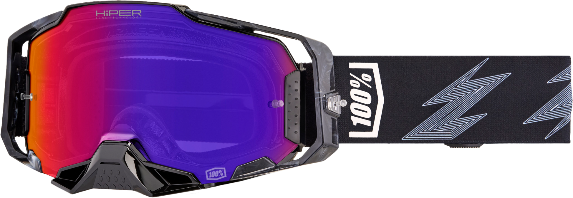 The ARMEGA offers premium technology through an injection-molded, shatterproof lens that boasts an enhanced field of vision and impact protection. The 6-point locking-tab integration secures the lens and works in unison with a quick-change system enabling you to switch between lenses with a couple of simple clicks. A bonded, dual-injected frame incorporates a next generation sweat management system that collects sweat as your ride intensifies and forces it away from the lens and out of the goggle through an integrated channel in the frame. Force air intakes in the frame promote increased airflow to ensure fog-free vision, despite heated efforts overcoming sub-par competition. Want a goggle designed to give it 100% deep in the battlegrounds of motocross? Look no further than the ARMEGA